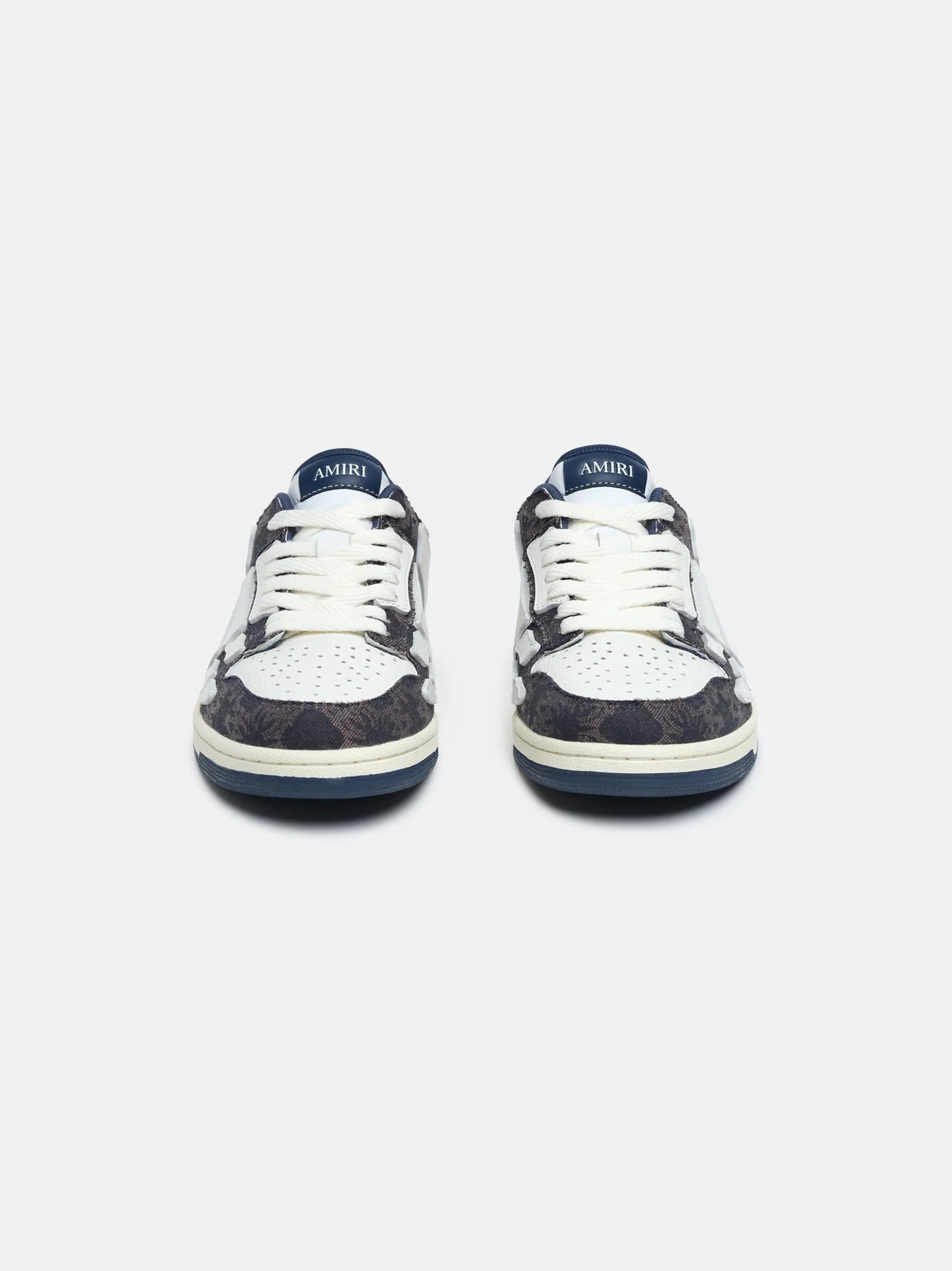 Seasonal MA Quad denim enriches the iconic Skel-Top Low silhouette for Pre-Spring 2025. The MA Quad Skel Top Low is crafted in leather with MA Quad jacquard denim paneling on a two-tone rubber sole with perforated detailing and signature graphics.
