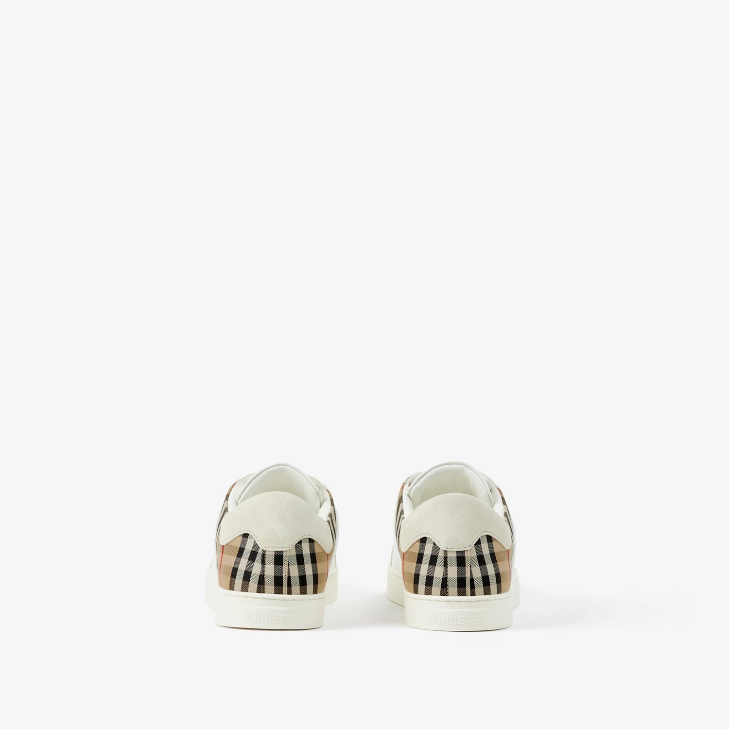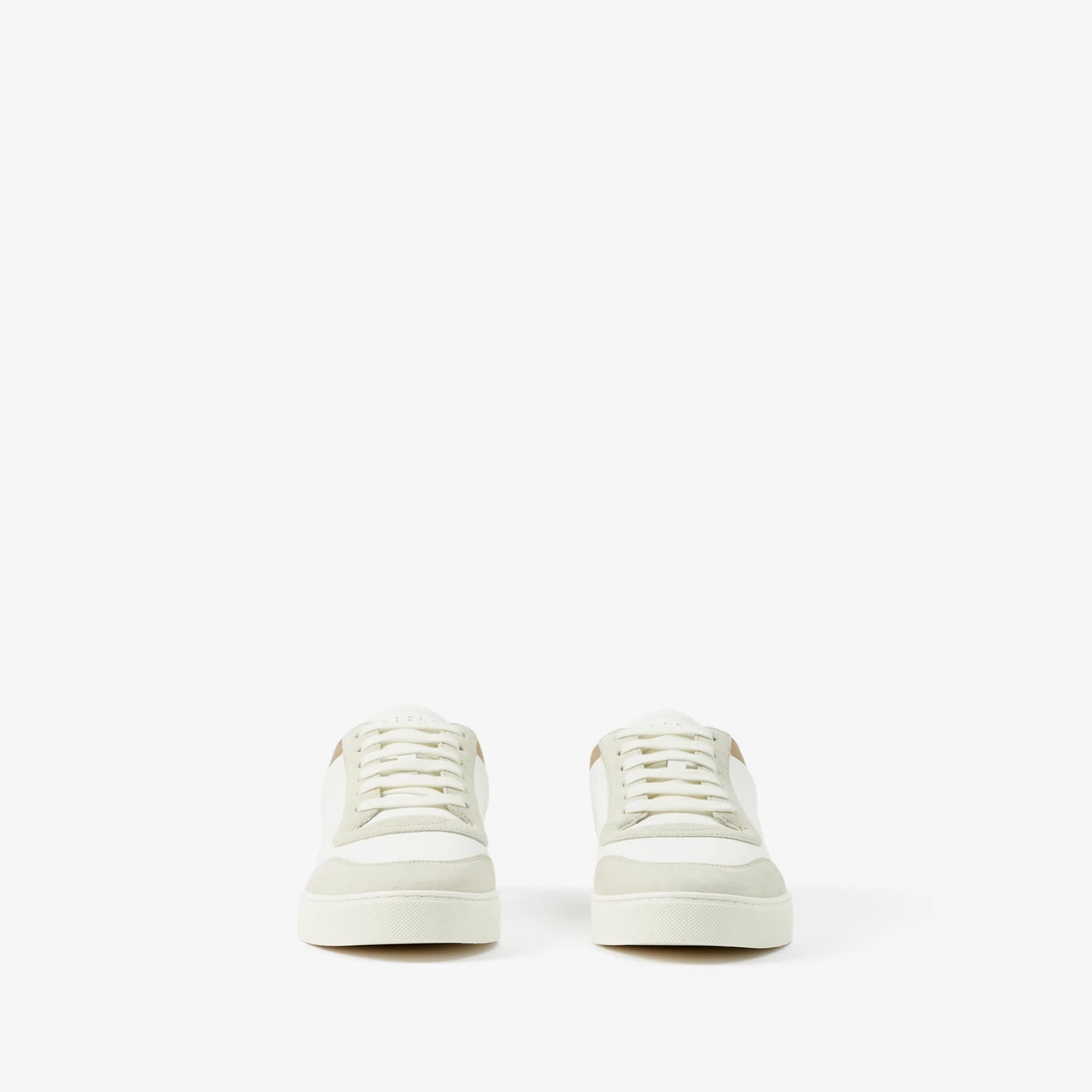 - Italian-made sneakers in smooth calf leather with suede and Burbbery Check cotton panels. The low-top style is lined in leather.
