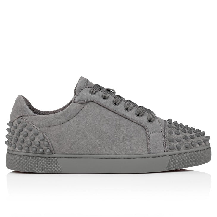 The Seavaste 2 Orlato trainer features contemporary lines and urban appeal. This sporty Maison Chrristian Louboutinn style is crafted in all-over Smoke Grey veau velours. It is enhanced on the toe and back with tonal signature spikes.