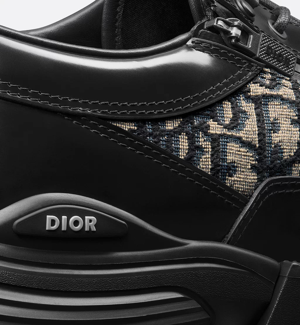 The D!or Combat derby shoe presents a hybrid, modern and athletic silhouette. The black polished calfskin style is embellished with D!or Oblique jacquard panels on the sides and tongue. The shoe features laces and a technical zip closure, while the lightweight hybrid sole accentuates its couture appeal. Enhanced by the D!or signature on the side, the shoe will add a contemporary touch to all of the season's looks.